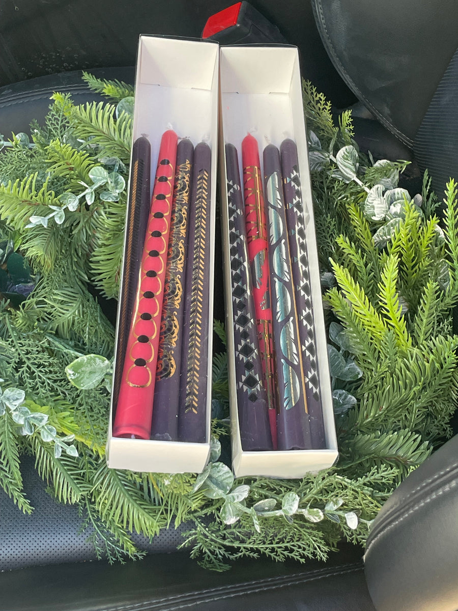 These are limited in quantity each taper is hand poured and gilded with silver and gold with unique patterns in every set!!!